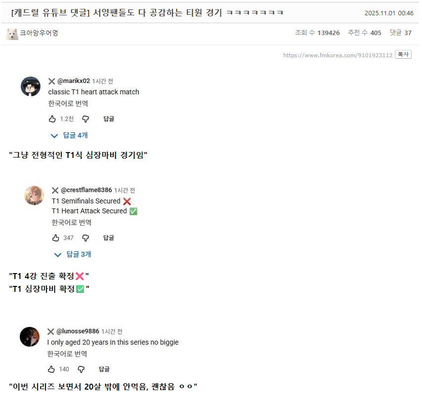 롤드컵) 서양팬들도 다 공감하는 티원 경기