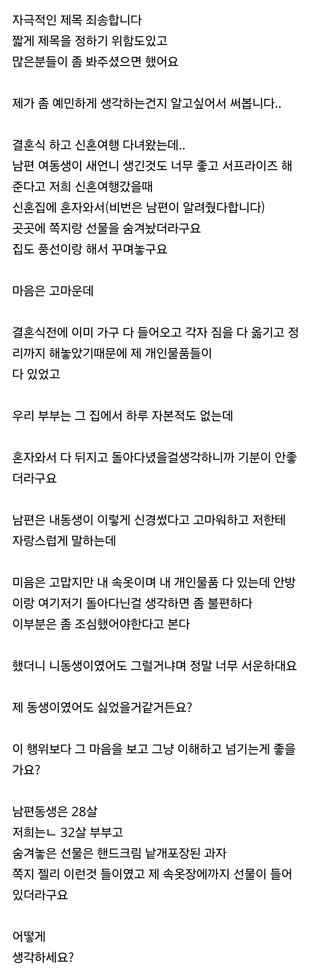 신혼집 혼자 들어와서 헤집고다닌 시누