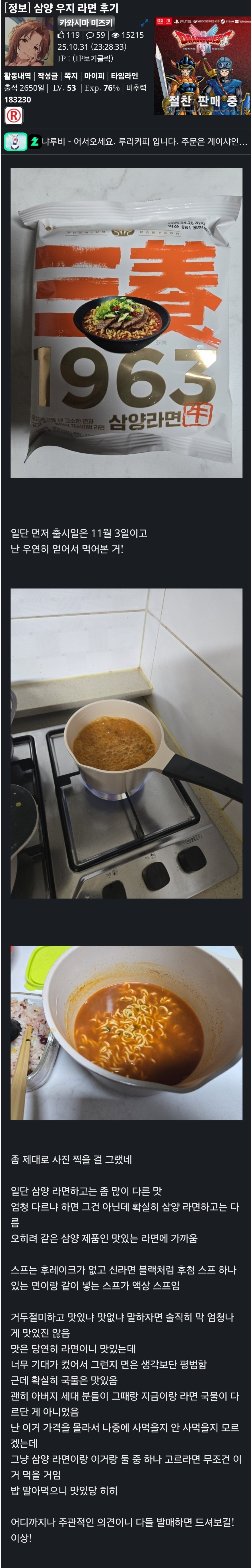 소고기 기름... 오늘 출시한 삼양 우지라면 후기