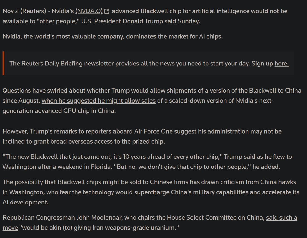 https://www.reuters.com/world/china/trump-says-nvidias-blackwell-ai-chip-not-other-people-2025-11-03/
