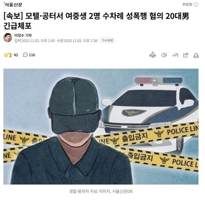 여중생 2명 수차례 성폭행 혐의 20대男 긴급체포